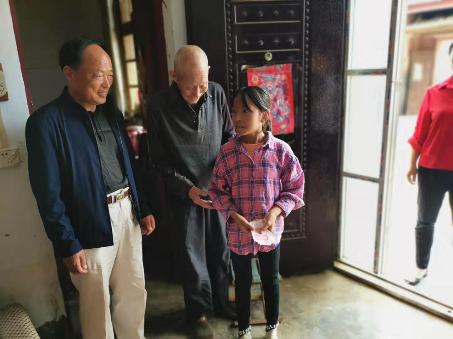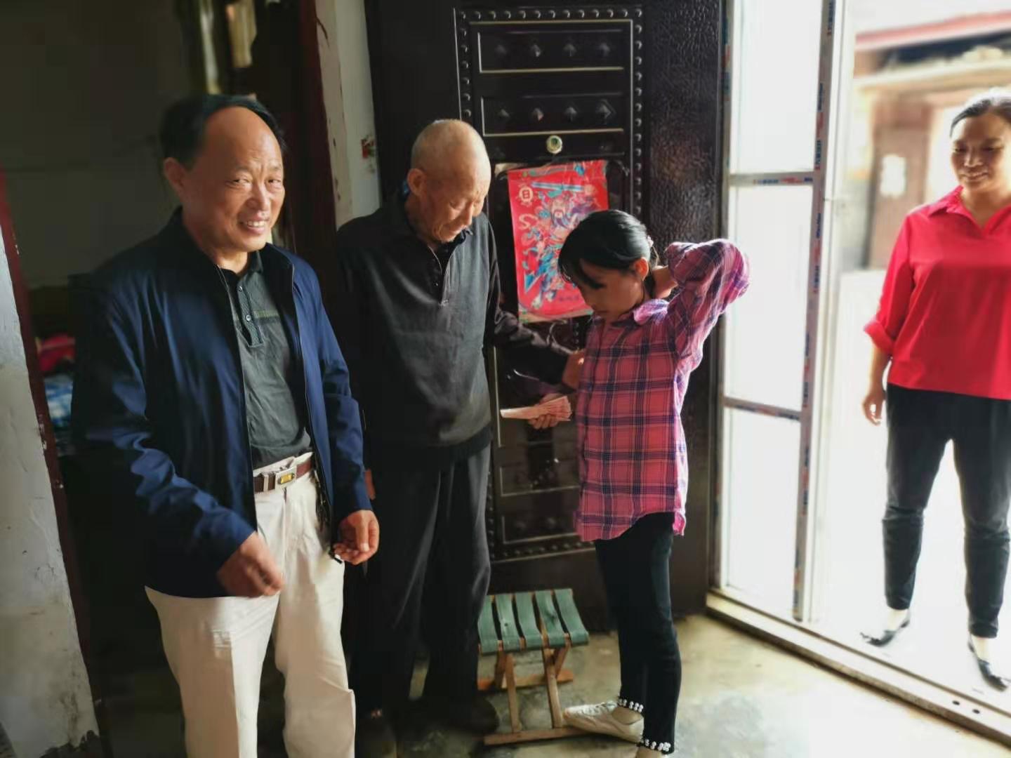 首先來(lái)的是張子店的李小林家,她是一個(gè)孤兒,父母早早的就離她而去,爺爺獨自領(lǐng)著(zhù)她生活,是村里的建檔立卡貧困戶(hù),看到石經(jīng)理把救濟金交到了自己的手上,淳樸的撓了撓頭,爺爺也露出了高興的笑容。